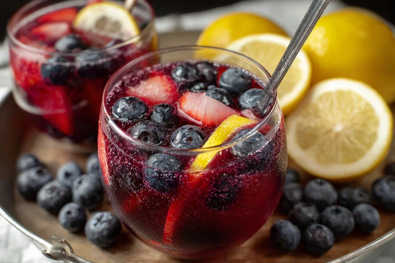 A refreshing and vibrant sangria infused with blueberries and lemons, perfect for summer gatherings.