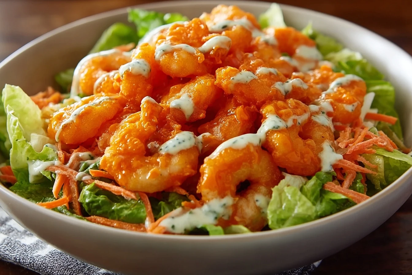 Shrimp – Fresh or frozen shrimp, peeled and deveined Buffalo Sauce – Adds a spicy kick to the salad Ranch Dressing – Creamy and flavorful Celery – Adds a crunchy texture Green Onions – Enhances the freshness of the salad Lettuce – Provides a bed of greens for the shrimp