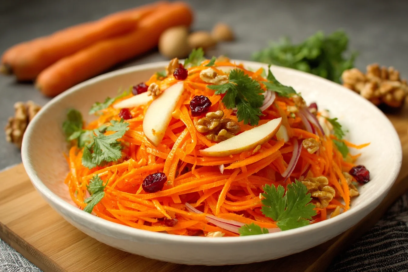 A refreshing and vibrant salad combining crisp apples and sweet carrots, perfect for any meal.