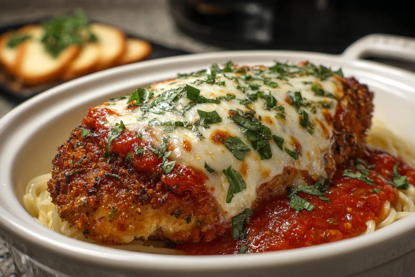 This Crockpot Chicken Parmesan is a winner for so many reasons. First, it’s incredibly easy to prepare—just set it and forget it. Perfect for those hectic days when you have a million things to do but still want a home-cooked meal. It’s also a healthier version of the traditional dish, as the chicken is not fried, reducing the fat content significantly. The slow cooking process allows the flavors to meld beautifully, resulting in tender, juicy chicken that’s sure to satisfy. Plus, it’s a hit with kids and adults alike, making it a versatile choice for family dinners.