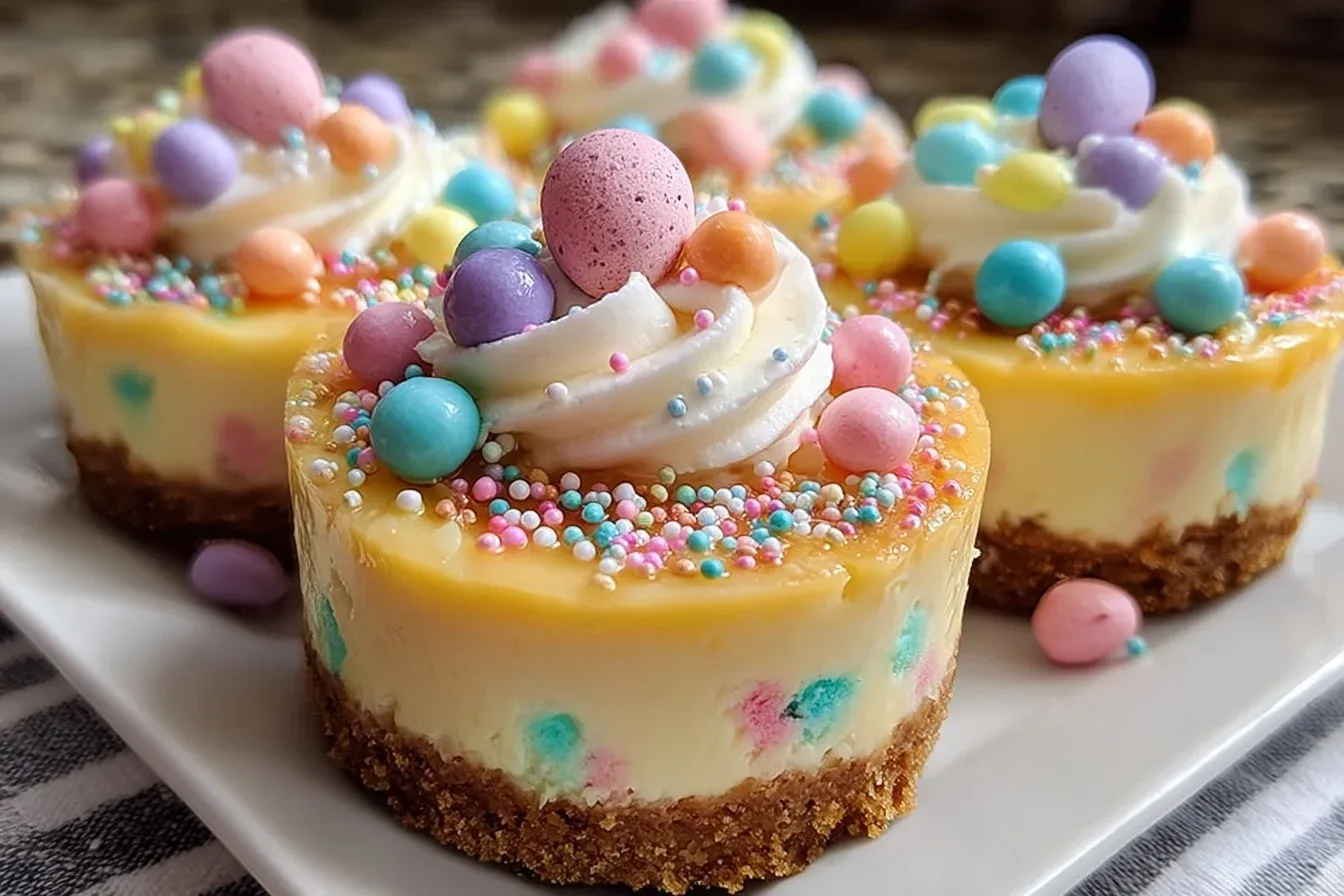 Delightful mini cheesecakes with a creamy texture and crunchy crust, perfect for Easter celebrations.