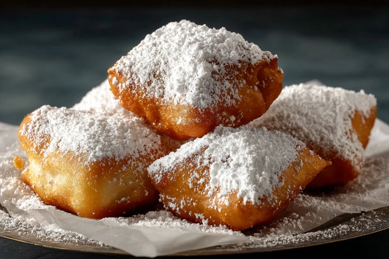Continue shaping and frying the remaining dough in batches, adjusting the heat as needed to maintain the oil temperature. Once all the beignets are fried, allow them to cool slightly before dusting them generously with powdered sugar.