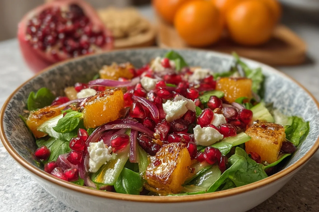 Growing up in Chicago, winter was always a magical time in our household. The city would transform into a snowy wonderland, and our kitchen became the heart of warmth and comfort. My mother, with her Polish roots, would often whip up hearty dishes that filled our home with enticing aromas. But it was my babcia who introduced me to the vibrant world of salads, even in the dead of winter. One of my fondest memories is of her teaching me how to make a healthy winter salad with pomegranate seeds—a dish that was as beautiful as it was delicious. This salad has become a staple in my own family’s winter menu, bringing a pop of color and a burst of flavor to our table. It’s a delightful mix of fresh greens, crunchy nuts, and juicy pomegranate seeds, all tied together with a tangy dressing. Not only is it visually stunning, but it’s also packed with nutrients, making it a perfect dish for those chilly winter days.