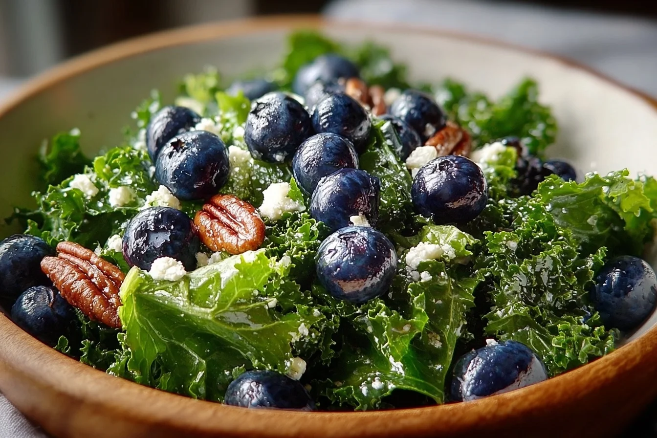 A vibrant and nutritious salad combining kale, blueberries, and a tangy vinaigrette.