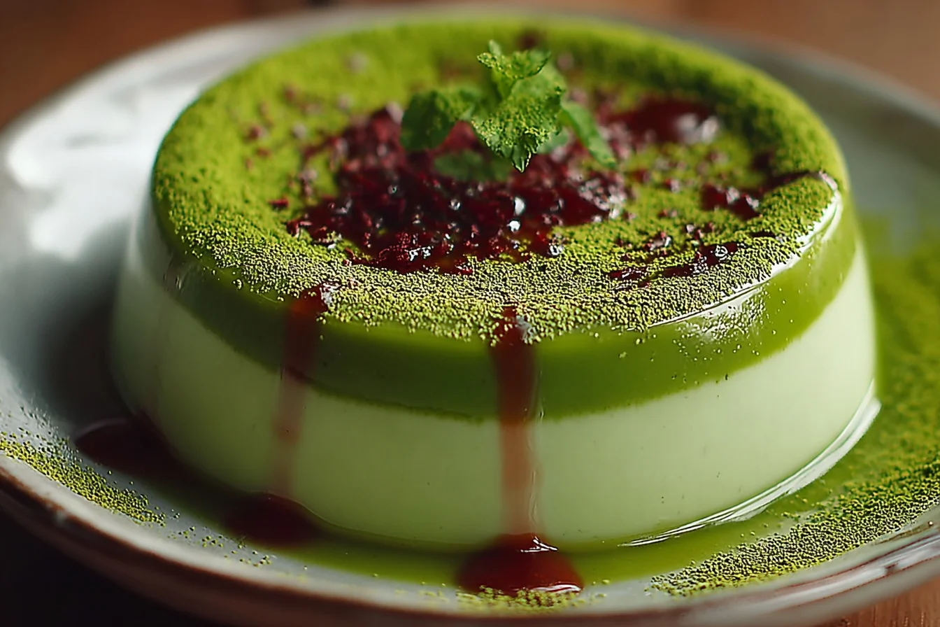 A creamy, elegant dessert combining the smoothness of panna cotta with the earthy notes of matcha.