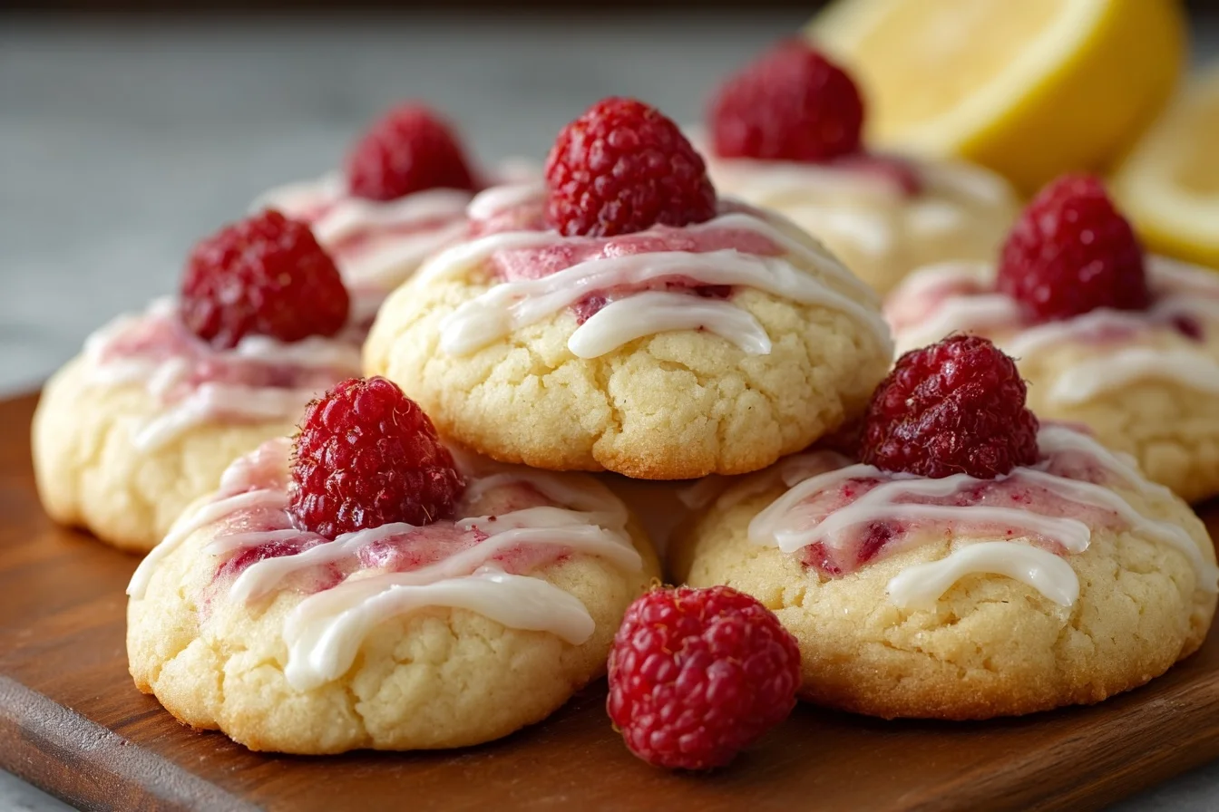 Delightful cookies combining tangy lemon and sweet raspberries for a refreshing treat.