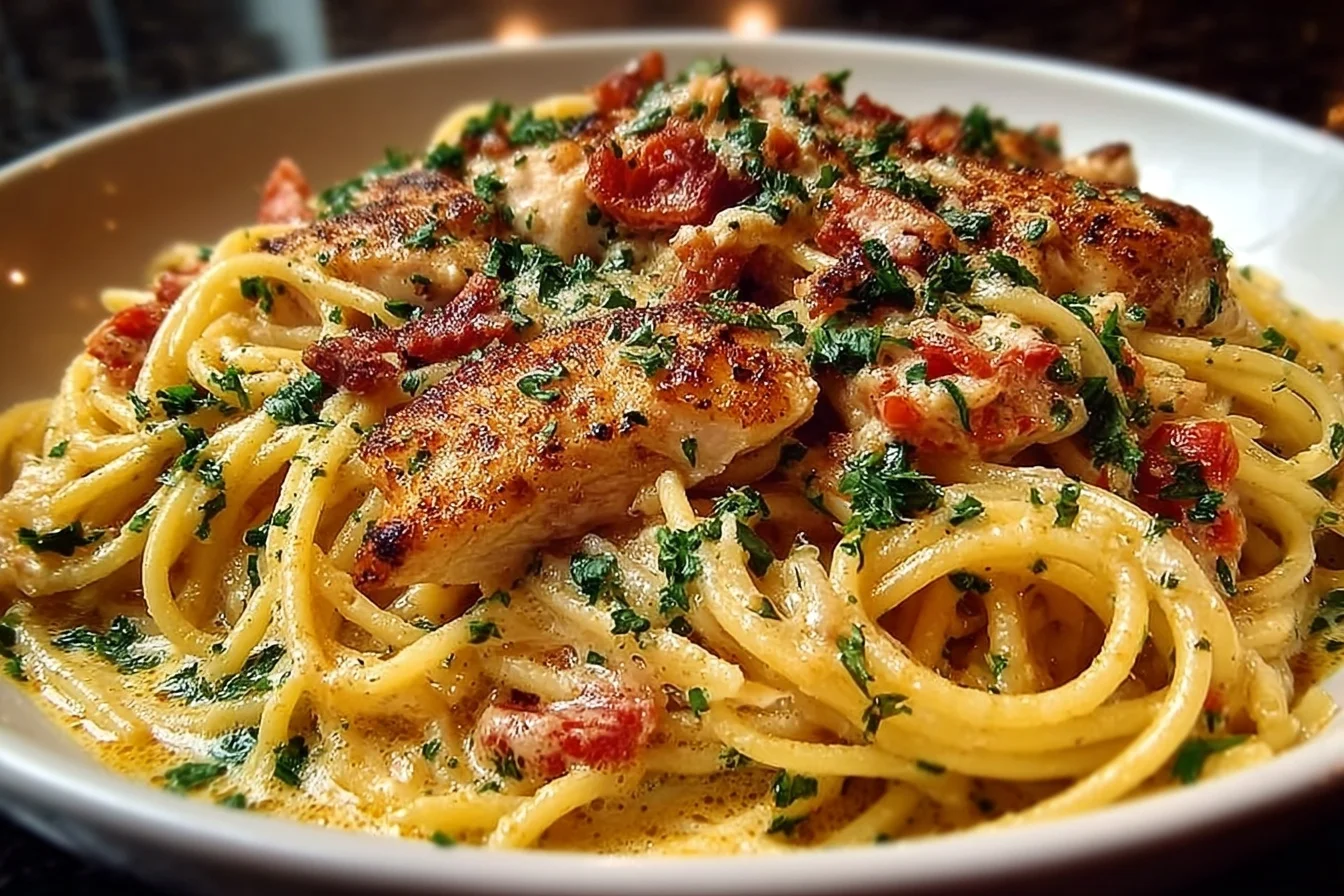 - Garnish with fresh parsley before serving. Enjoy your Monterey Chicken Spaghetti warm!