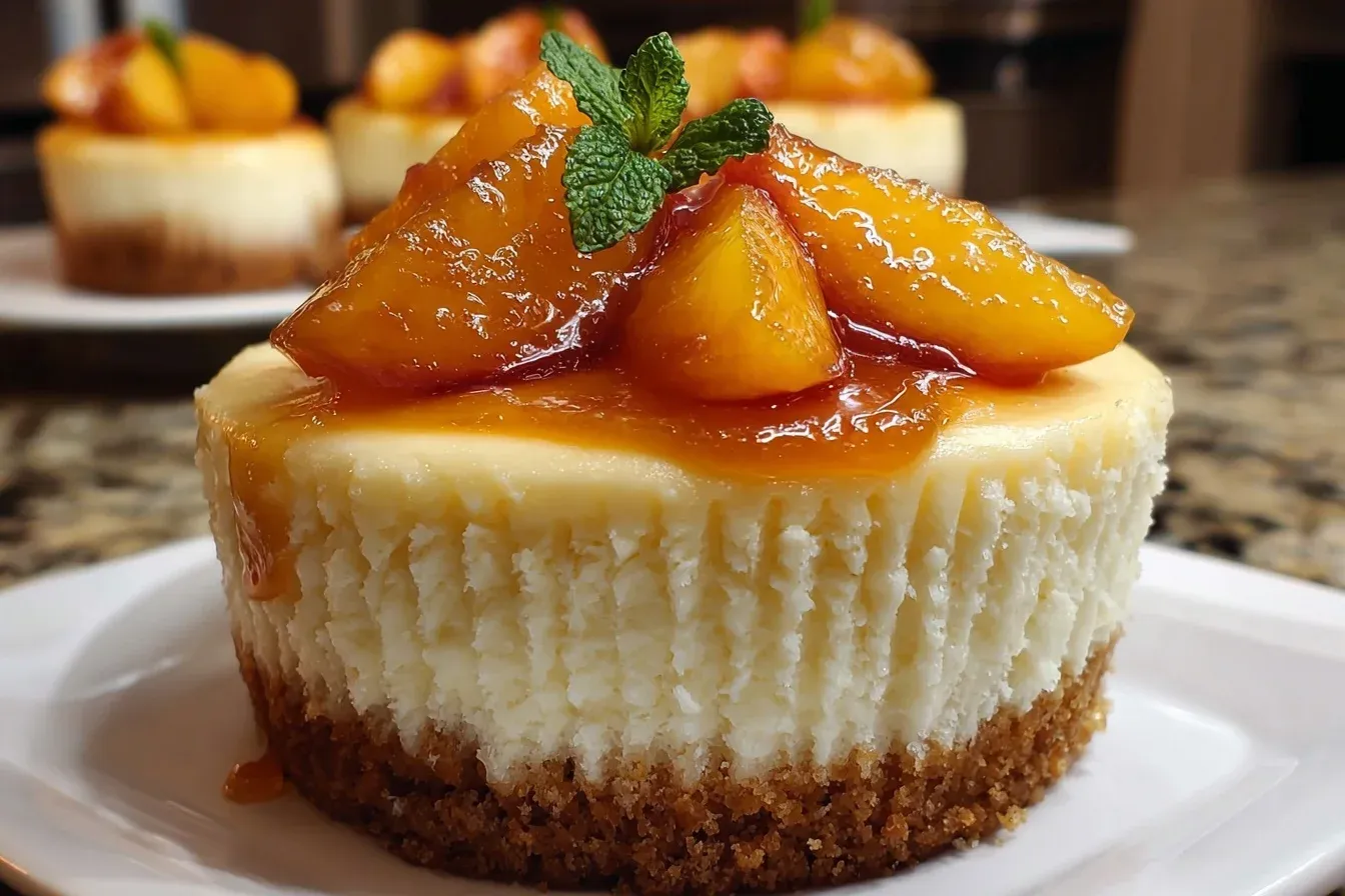 A delightful cheesecake featuring fresh peaches and natural honey, inspired by family traditions.