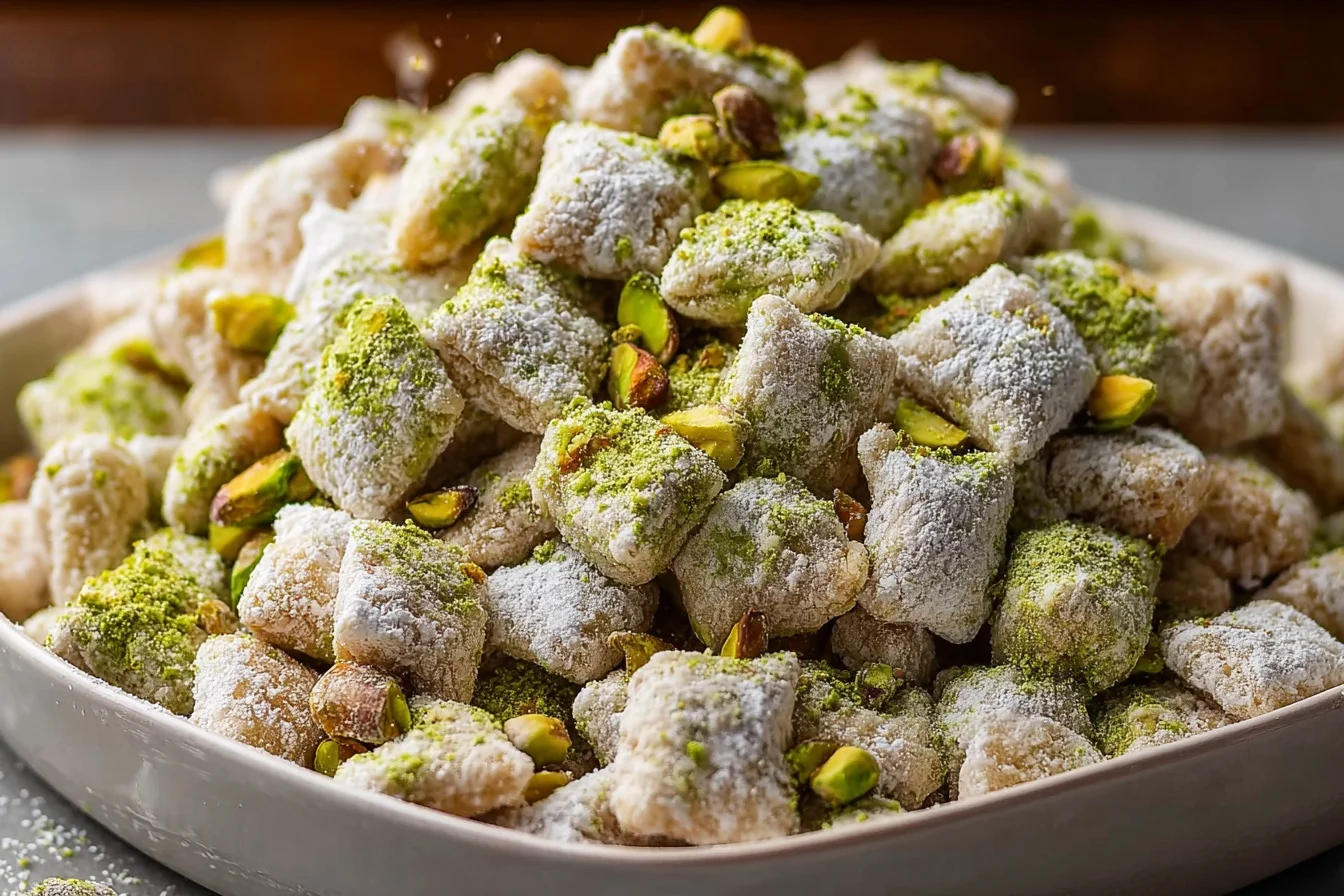 If you’re looking for a snack that’s both easy and irresistible, pistachio puppy chow is your answer. It’s quick to make, requiring just a handful of ingredients and minimal effort. The combination of creamy white chocolate, nutty pistachios, and crunchy cereal makes it a perfect treat for any occasion. Plus, it’s naturally gluten-free, making it a great option for those with dietary restrictions. Whether you’re preparing it for a family movie night or a festive gathering, this snack is sure to be a hit.