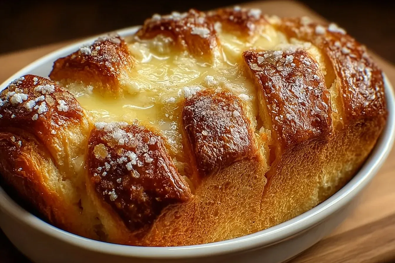 This rich eggnog croissant bread is perfect on its own, but it also pairs beautifully with a dollop of whipped cream or a scoop of vanilla ice cream. For a festive touch, sprinkle some powdered sugar over the top before serving. It’s a delightful addition to any holiday brunch or as a comforting dessert after dinner.