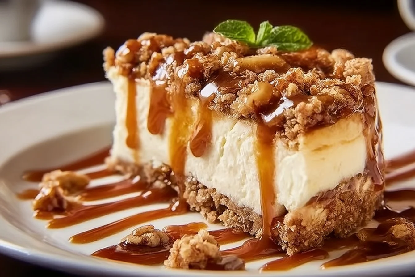 - Sprinkle the reserved oat mixture over the top of the cheesecake layer.