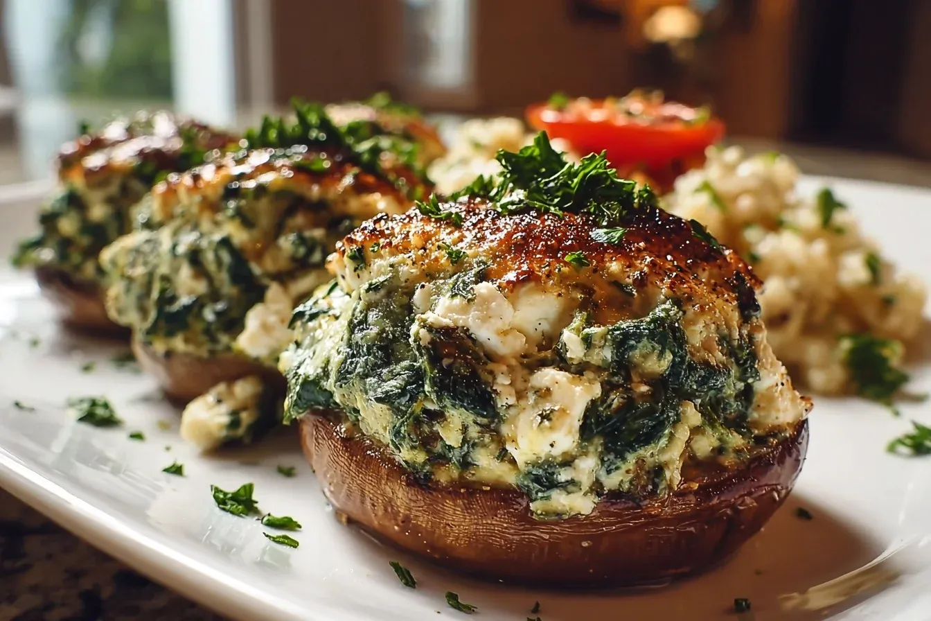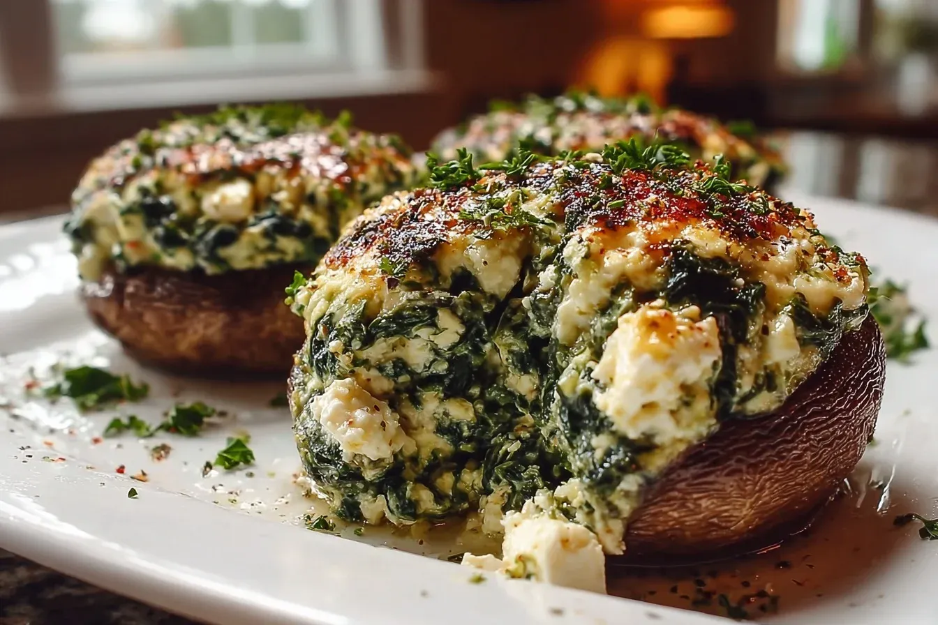 To ensure your Spinach Feta Stuffed Portobello mushrooms turn out perfectly every time, here are a few expert tips. Choose mushrooms that are firm and large enough to hold the filling. Don’t overcook the spinach; it should just be wilted to retain its vibrant color and nutrients. If you prefer a bit more crunch, you can add chopped walnuts or pine nuts to the filling. Finally, don’t forget to season well with salt and pepper to enhance the flavors.