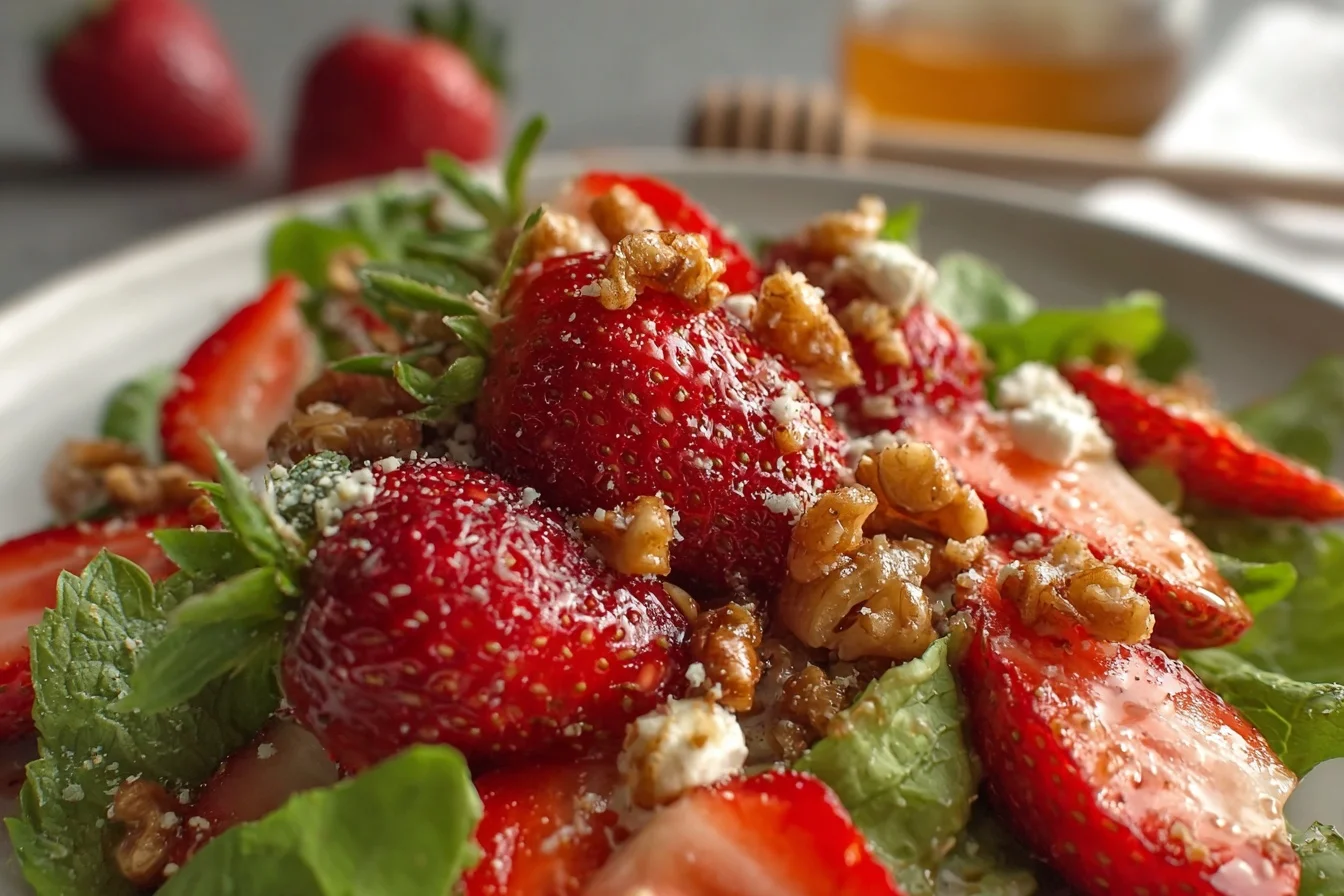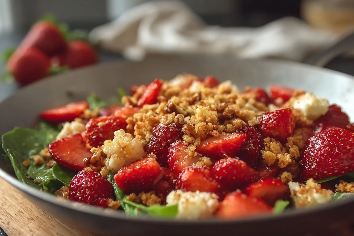 A delightful dish balancing sweet strawberries with a savory crunch, perfect for any occasion.