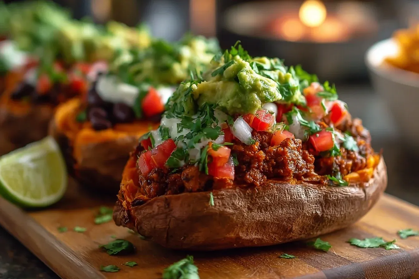 Taco stuffed sweet potatoes are not only delicious but also incredibly versatile. They’re naturally gluten-free and can easily be made vegetarian or vegan by swapping out a few ingredients. The sweet potatoes provide a hearty base that’s rich in fiber and vitamins, while the taco filling adds a burst of flavor and protein. It’s a meal that’s both satisfying and nourishing, perfect for a weeknight dinner or a casual gathering with friends and family. Plus, it’s a great way to use up leftover taco ingredients, making it a budget-friendly option as well.